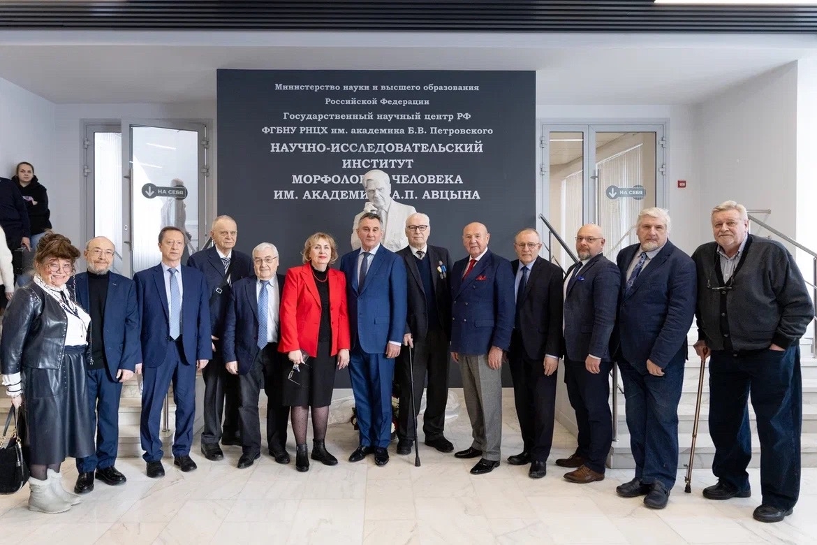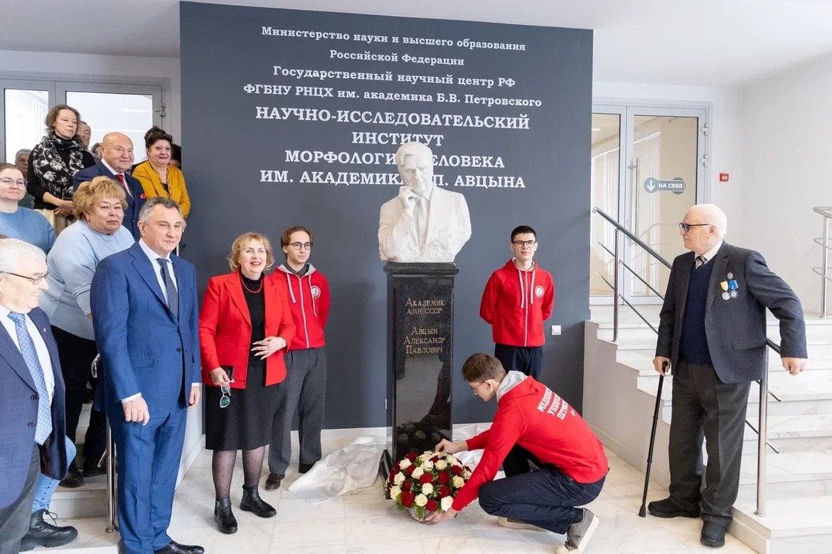 09 февраля 2026 г. в Институте морфологии человека ФГБНУ «РНЦХ им. акад. Б.В. Петровского» открыли памятник основателю - академику АМН СССР Александру Павловичу Авцыну. Мероприятие было приурочено к празднованию Дня российской науки. Гостями торжественной церемонии стали ученики и последователи А.П. Авцына, коллеги из крупных федеральных медицинских научных центров, студенты Медицинского университета Петровского.